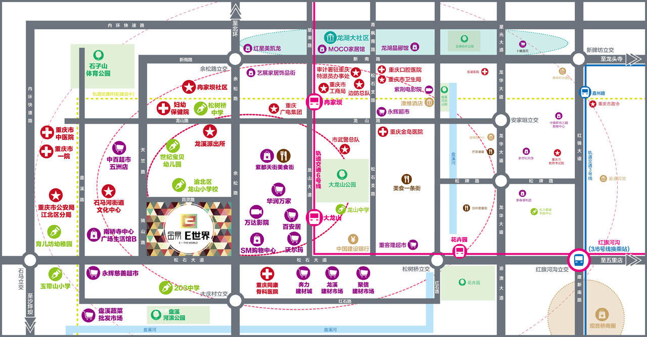 渝北区龙山街道百灵路1号(龙湖·大城小院旁、SM广场对面)