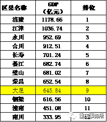 2019年渝西12区GDP