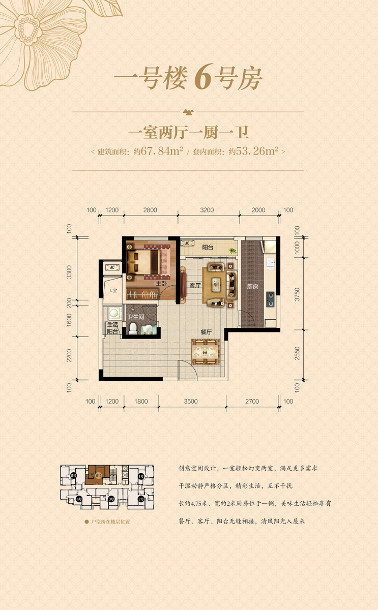 1号楼-6号房-1室2厅1卫-67.84㎡