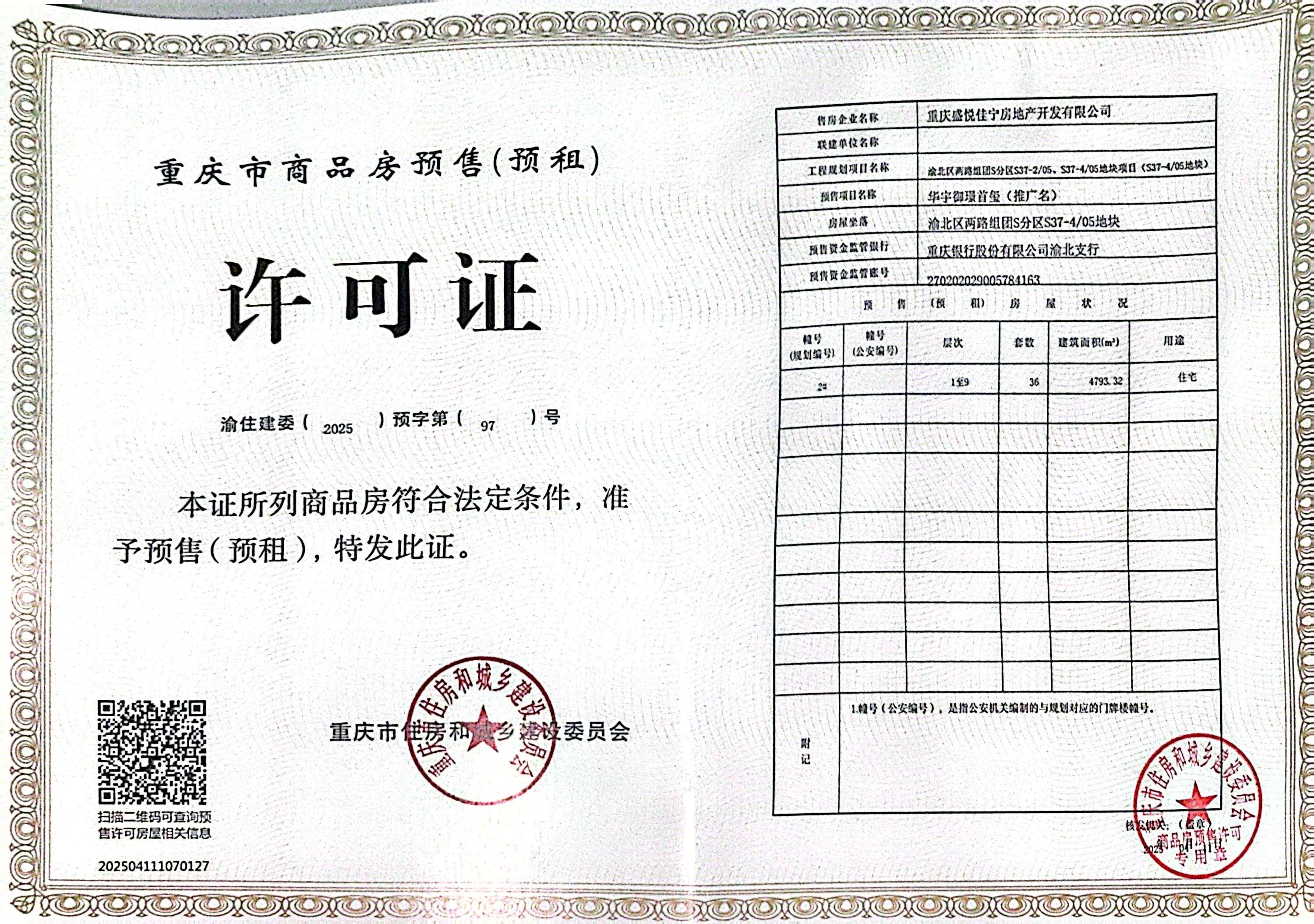 渝住建委(2025)预字第(97)号 | 2025-04-11 | 2期2# |