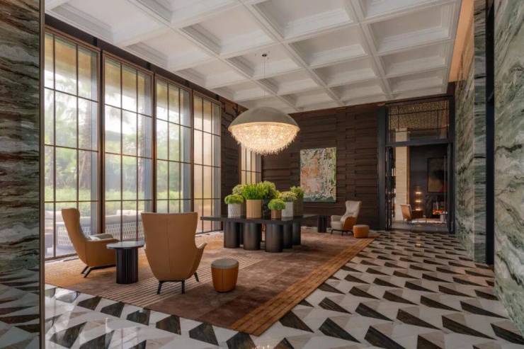 然而,这天览的最打动高净值人群的地方。LACADIERE精装的核心价值,一直是品质和品味合力形成的格调。在天览,每一道织纹,石材缝隙、金属转角,工艺标准都毫米级。从色温的渐变、空间的专场,都流畅自然!一句话:“奢适而不浮夸,昂贵且有温度”,看客看到低调的炫耀,业主却能体验到生活的艺术。