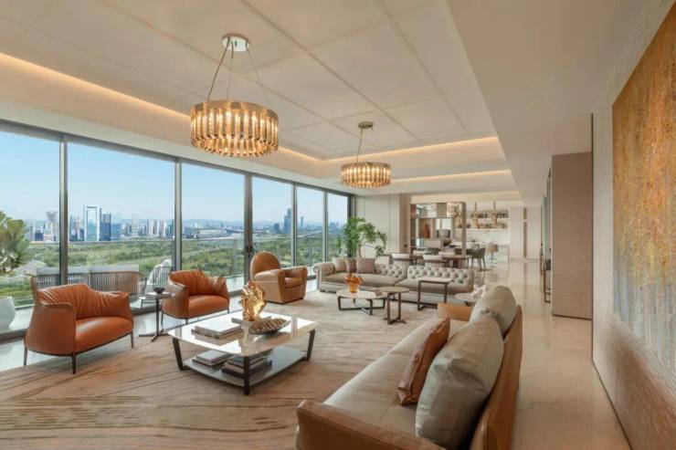 所以,项目将原定的400户改成了200多户,将户型起步面积定在约325㎡,且户户朝向东南。它完美还原了曾仕乾的目标:“把每一户都做成无敌视野”。