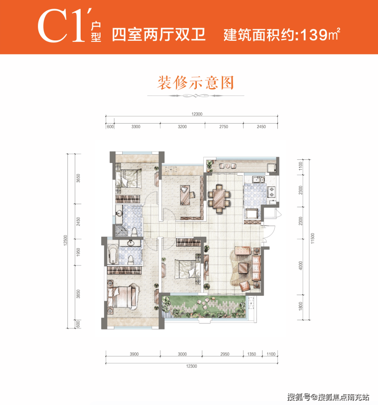 总高13层,建面135-139㎡,均价14000