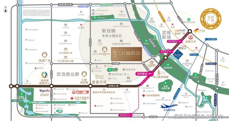 本项目地处新双楠板块/九江未来公园社区,是成都市十四五规划环城生态带未来美好公园社区的首批次示范区,践行“大成”公园城市发展理念,区域内土地价值拉高,改善属性极速提升,现在买入正当时。承接武侯新城、金融城等高端改善外溢,加上项目位于区域发展主轴线双楠大道,产业及配套延此轴线分布,人流集中,需求旺盛,且有已成型的25000亩环城生态公园和8500亩的空港中央公园及设计规划的新双楠未来公园社区。