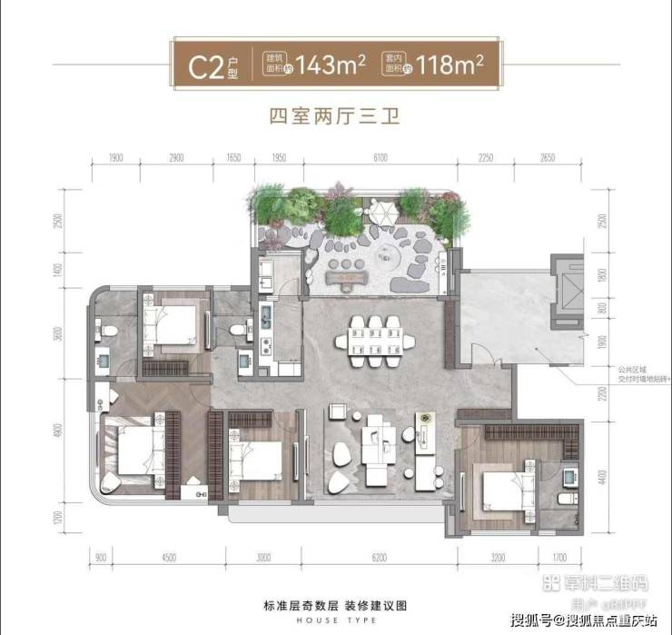 (面积)建面122-136㎡ 四房双卫