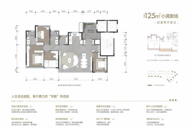 溯源幸福感哲学的灵感设计,匠心打造建面约112-175㎡魔方生长宅,从品质单身到两人一宠;从三口之家、二孩家庭到三代同堂,全生命周期生长户型,将家庭空间打造成24小时不间断的真人秀生活聚场。
