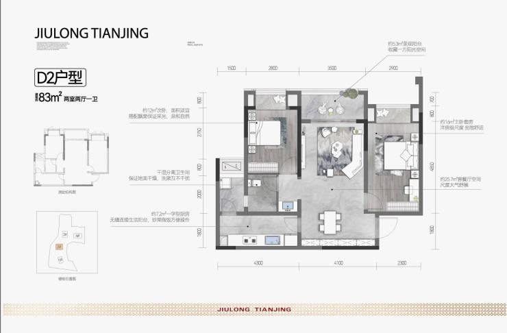 建面约83平套二