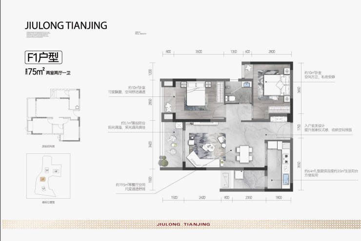 建面约75平套二