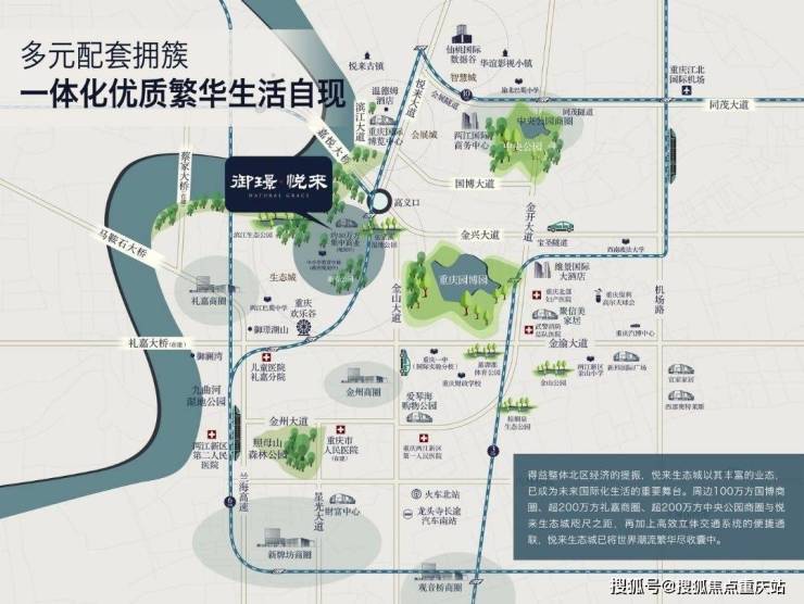 医疗:金山医院、礼嘉儿童医院、渝北区人民医院、重庆市人民医院。
