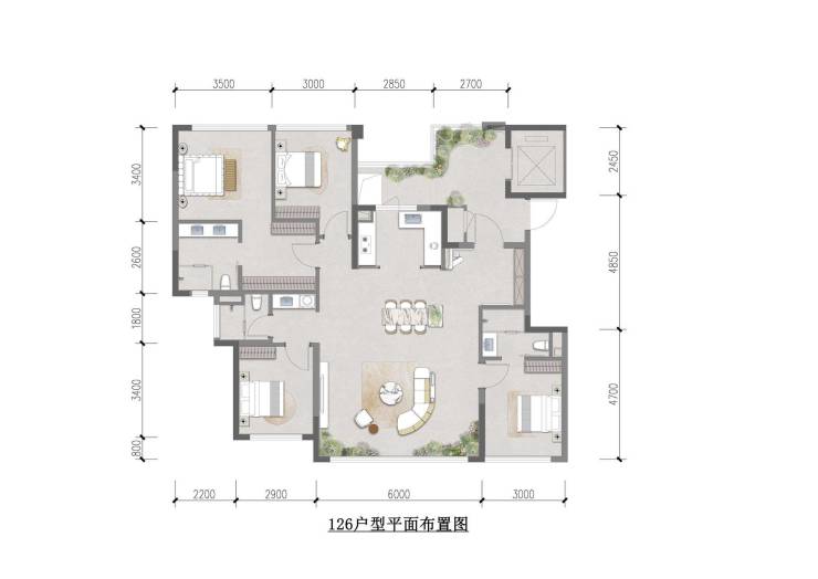 建面约126㎡平套四