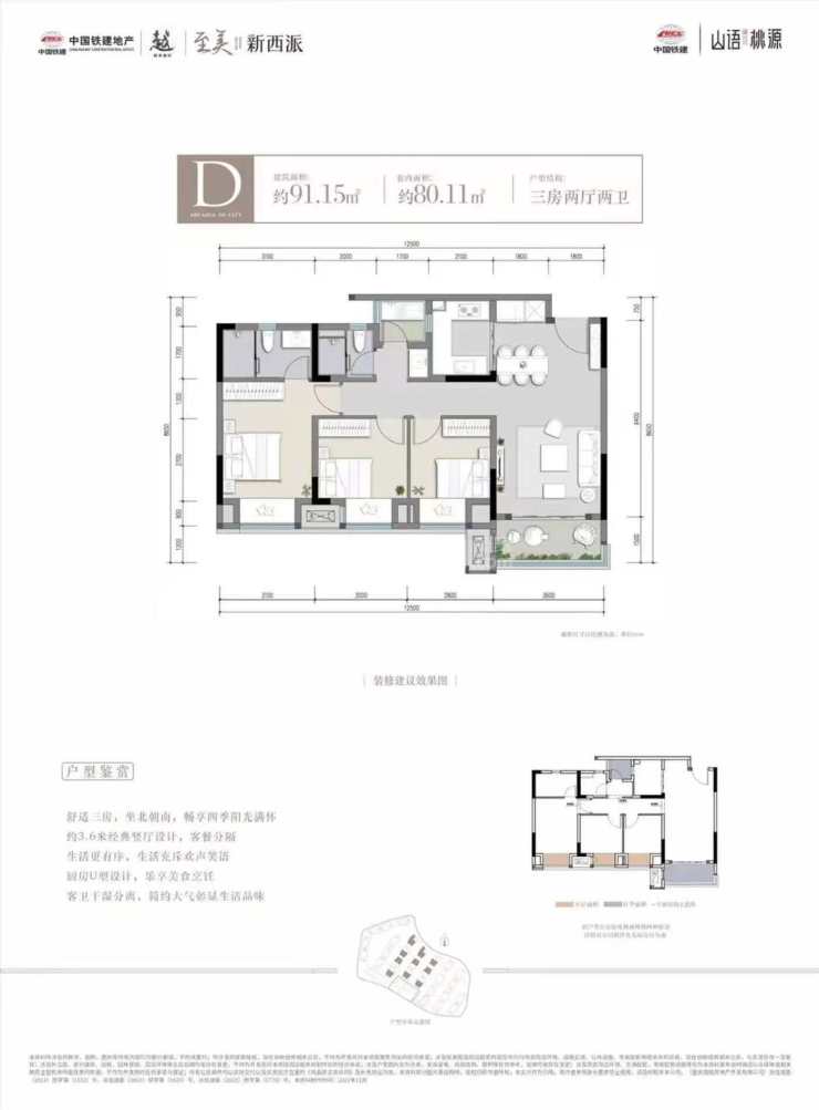 建面约91平套三