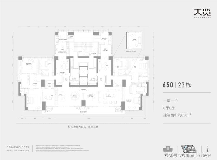 以650㎡一层一户、325㎡奢阔半层的户户超大面积,为业主构建纯粹圈层生活场景。
