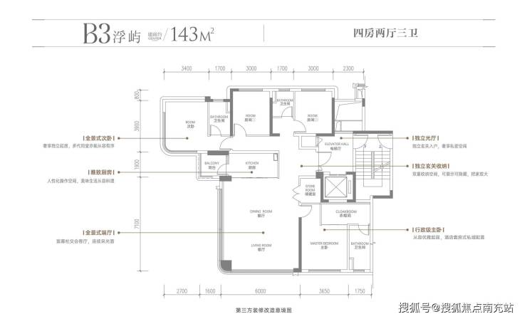 建面约143㎡ | 高奢四房•光厅双厅三卫