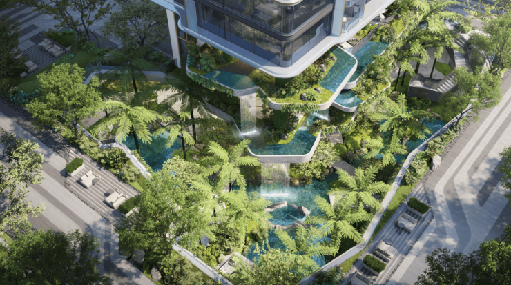 超15米垂直生态系统——新规空中无边界流动云端建筑,约45%绿化率新加坡式空中云端花园,建筑从2层生长,成都新规首个