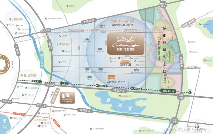 交通:成洛大道+沪蓉+厦蓉、三环+绕城,贯穿全城(距成洛枢纽仅约1.7km)4号线(明蜀王陵站1.3km、成都大学站2km)、(规划中)9号线、12号线交汇处范家院子TOD约2km