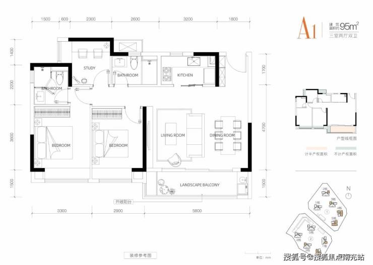 面积:95-100平 套三双卫