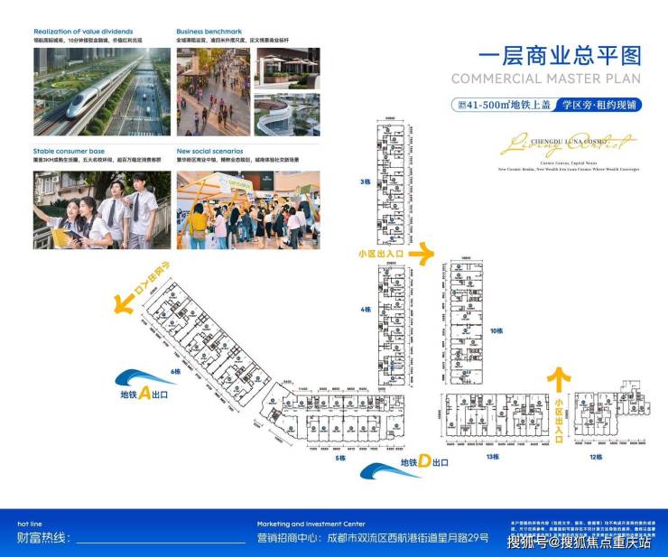 1⃣️聚人气,项目对面不到百米距离,三个地铁出站口,旁边三所大学辐射学生12万人,最近的西南民族大学就在项目对面,周围常驻人群超28万人