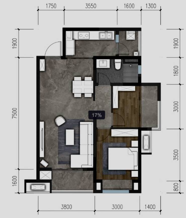 竖厅格局,阳台/客厅/餐厅/厨房无缝连接