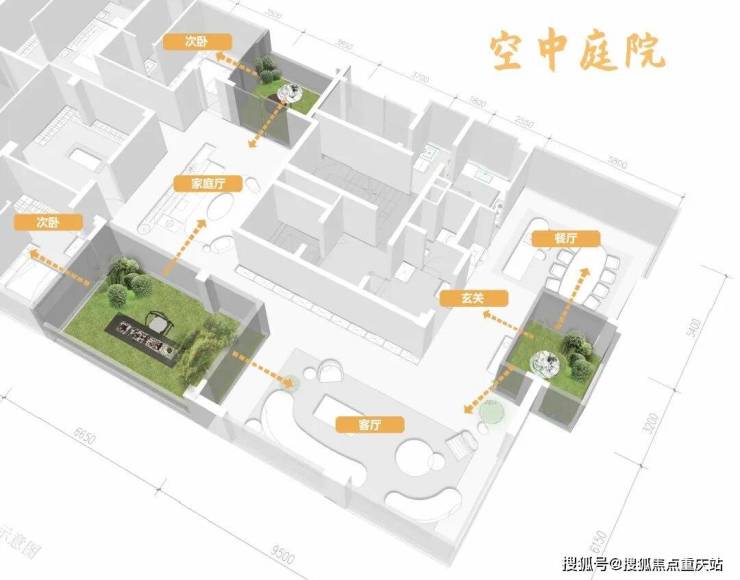 前一句,主要讲的是“四合院”式的布局,是围绕庭院景观展开的,让家家户户都能成为“树景房”;而后一句,则是国宾7号院对户型设计的思考,不仅要引景入室,更要室内有景;明白了这句话,就能读懂它的户型。
