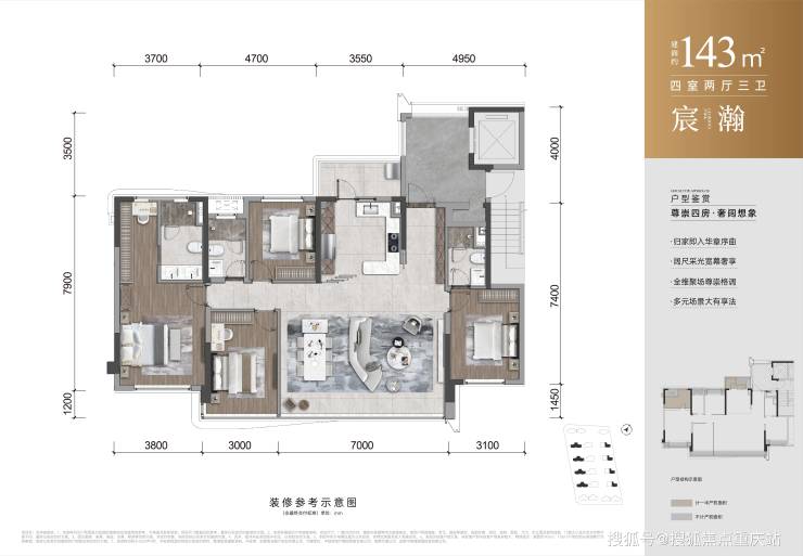 【户型】:约128㎡丨143㎡丨178㎡精装四房
