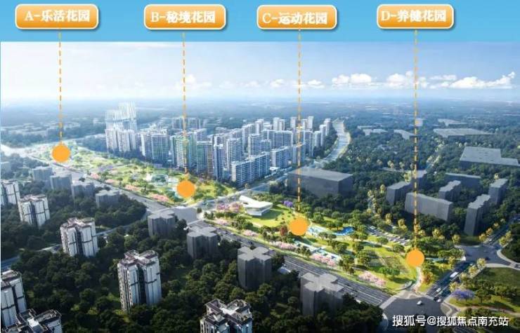 约190亩的云熙公园(规划中)紧邻项目西侧,这个沿物联大道的带状景观长廊规划了四个景观组团,分别是乐活花园、秘境花园、运动花园、养健花园,云璟林著旁是秘境花园组团。