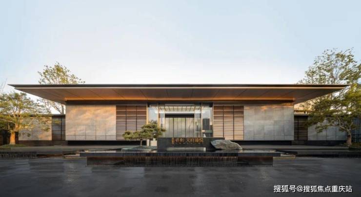 项目的园林景观汲取了乾隆四美之一的《蜀川胜概图》为灵感,打造“一园、三堂、九境”的现代东方美学园林,并以示范区实景做了高品质的诠释。