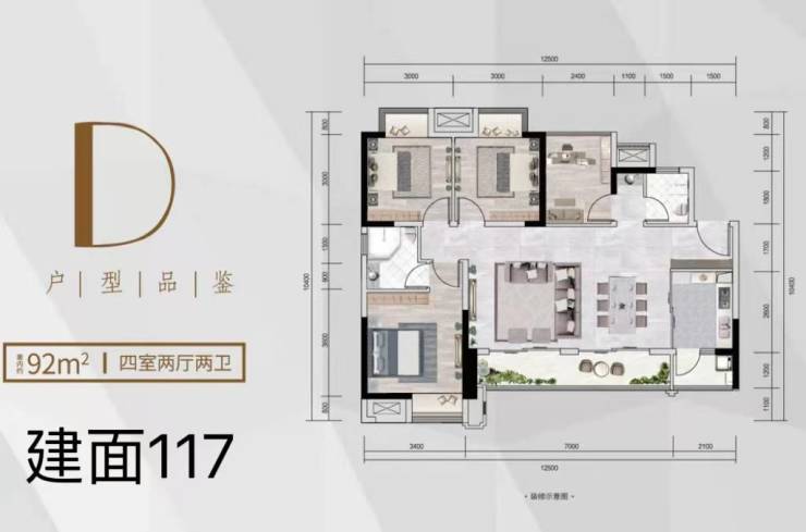 4.奢华横厅:超长7米横厅设计、宽境三房四房