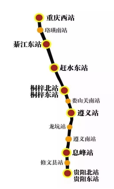 届时,重庆至桐梓的铁路旅行时间,将从目前的5小时缩减到1小时,重庆至贵阳将从目前的10小时压缩至2小时。