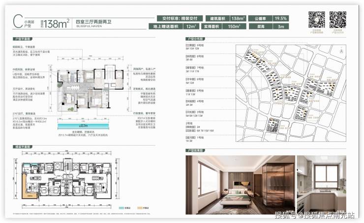 138㎡-四室三厅两卫板式结构,坐北朝南,区域唯一一家270度景观阳台,休闲空间可以从室内向延展空间,充分满足了业主对于户外休闲与观景的多元需求