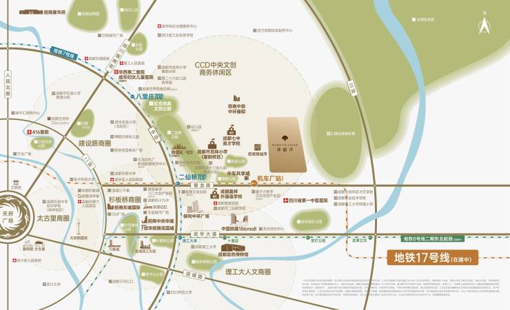地铁17号线(机车厂站)距离项目直线距离约500米(数据来源:百度地图直线测绘),目前已完成初步竣工验收工作,预计下半年即将开通。该线路可畅享多元城市体验:感受杜甫草堂、青羊宫的千年文脉,体验建设路美食街的市井烟火,探访龙潭机器人产业园的科技未来,将成为一条贯穿成都历史文化与现代活力的城市走廊。