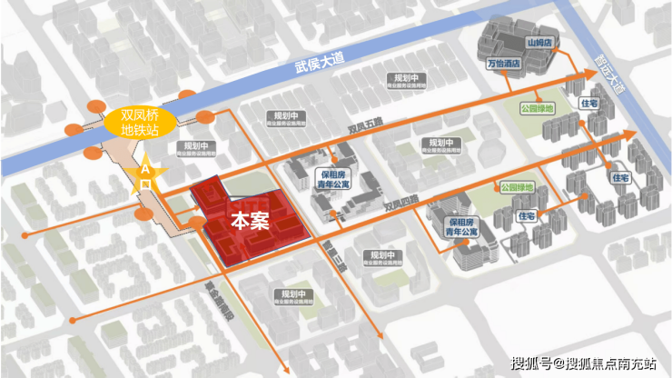项目位置:四川省成都市武侯区草金路南段,3号线、33号线(规划中)双凤桥换乘站