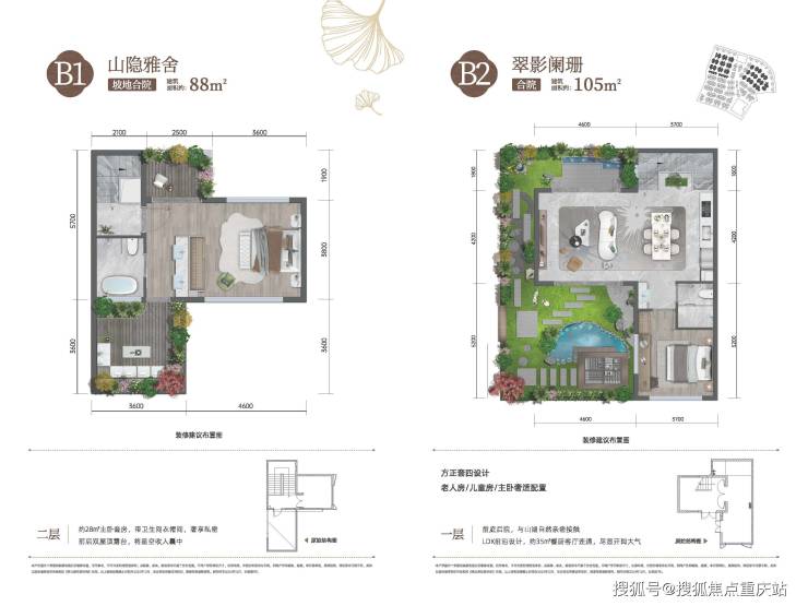 项目业态:合院(88-105㎡)、双拼(220㎡)