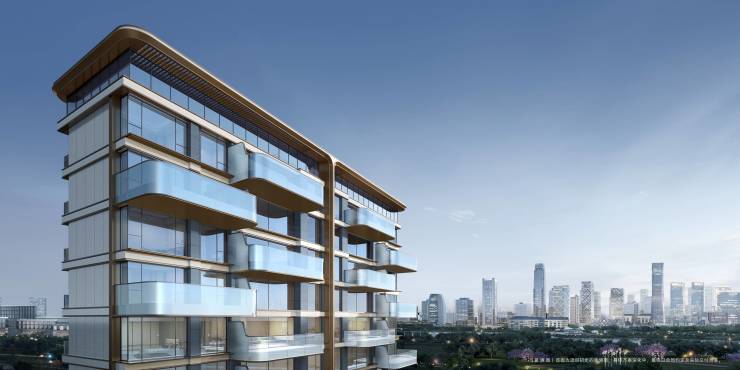 建筑美学:采用超流体立面设计,以 270° 弧线玻璃搭配铝板倒角,勾勒漂浮感天际线,约 0.38 的窗地比让每户都成为 “瞰景画框”,最大化延伸江景视野;