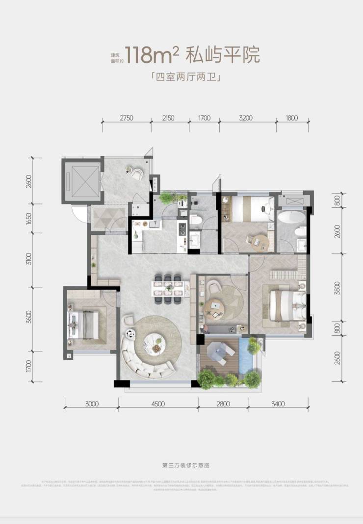 建面约118平套四