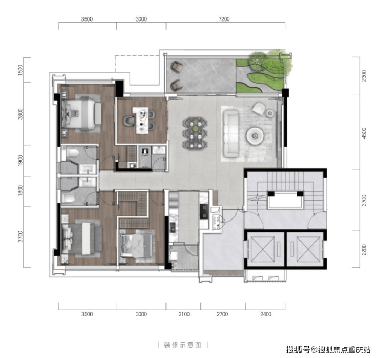 建面约142㎡四室两厅三卫+空中花园