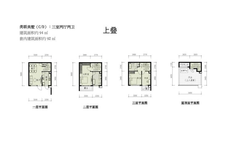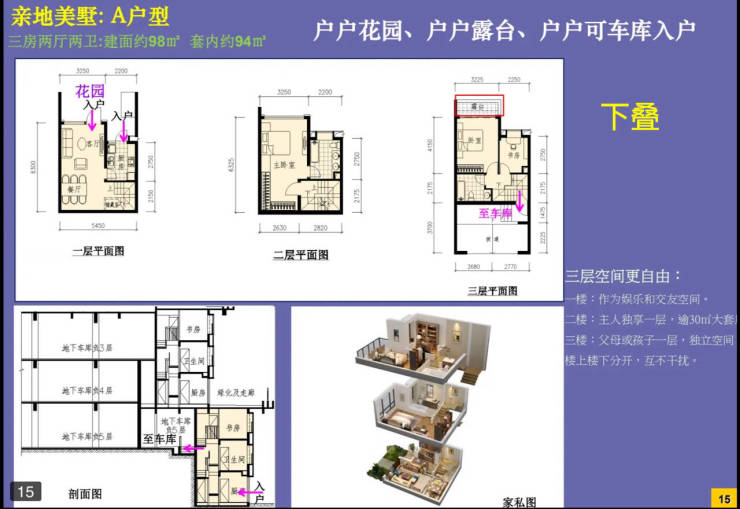 三房两厅两卫|一叠三层楼|户户门前入户花园10㎡ |单层面积约30㎡