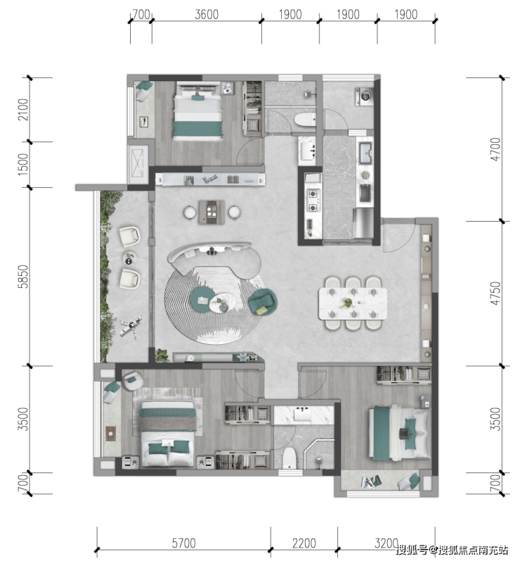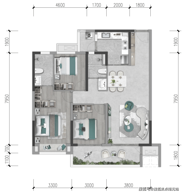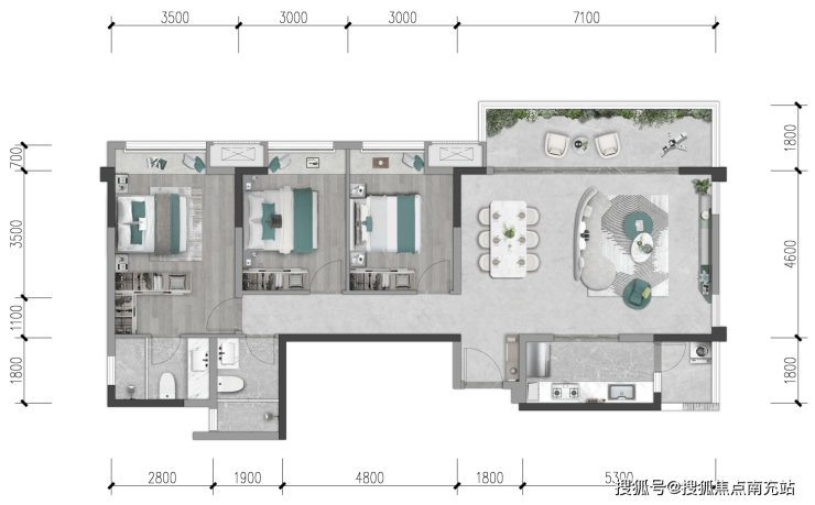 ○ 纯板式智阔三居,约16.6米全景采光面宽,极享调透视野;