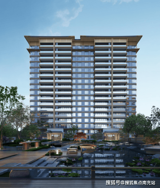 项目由20栋13-17F的纯板式小高层组成,约107亩占地,形成最大楼间距209米,使得视野最大化,尤其是立面,采用了屋顶展翼飞檐、香槟色饰板、蓝灰色中空LOW-E玻璃等,形成了独特的宋风建筑特色。