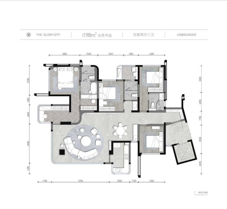 新绿启境的住宅类型主要为高层和洋房,建面约90㎡至198㎡,户型设计合理,充分考虑采光、通风和居住舒适度。无论是三口之家还是四世同堂,都能在这里找到适合自己的居住空间。特别是其大户型产品,如4室2厅3卫的建面198㎡户型,更是以其宽敞明亮的格局和精致的装修标准,赢得了市场的广泛好评。