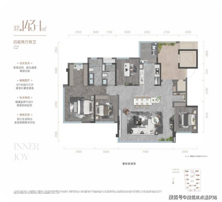 这个户型相当于约143㎡主力户型的“青春版”,尺度上有所减少,但依然保证了功能性和舒适性。