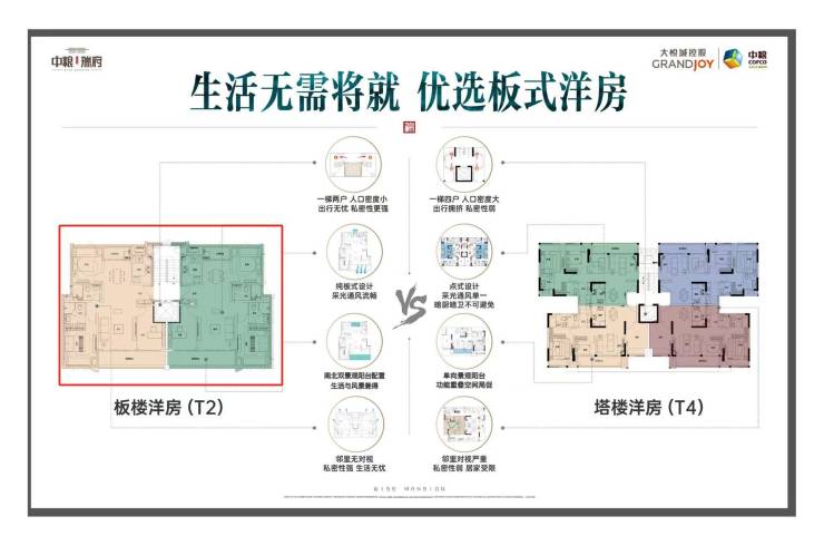 4. 1T2户纯板式洋房社区,产品均为南北通透,区别周边90%1T4假洋房居住舒适度更高,后期买卖二手房产品更稀缺,溢价空间更大,出手速度更快,且无竞品。