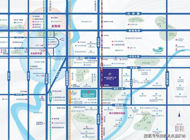 3、项目一街之隔落地四川省人民医院高新医学中心,总占地240亩,建成后将成为一个拥有3000张床位的三甲公益性医院,目前一期工程已完成可行性评估招标工作,进入监理招标阶段,总投资约20亿元,一期总建筑面积177574㎡(地上107324㎡,地下70250㎡),规划床位800张的三级甲等综合医院。