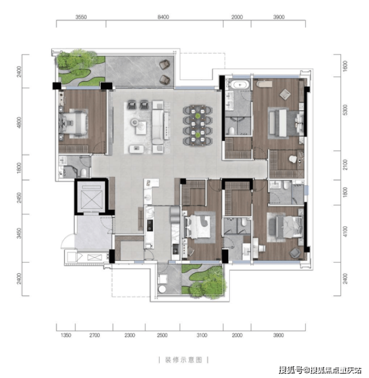 建面约142㎡四室两厅三卫+空中花园