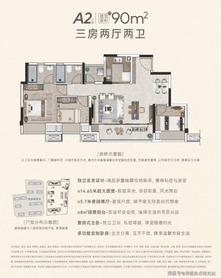 面积段:90㎡三房、95㎡三房、100㎡四房