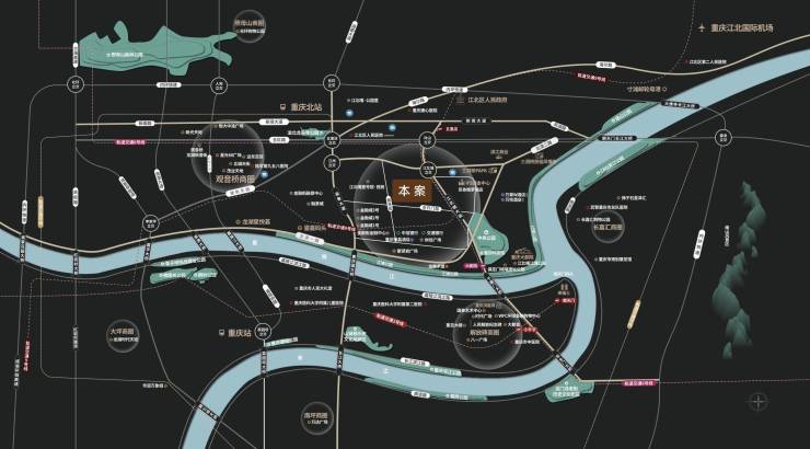 双轨交汇:距江北城地铁站仅 281 米,6 号线、9 号线在此无缝换乘,30 分钟直达机场、火车站;