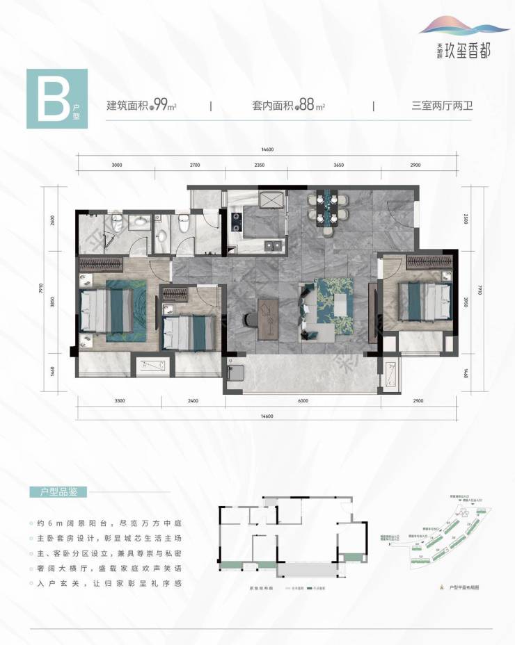 面积:建面99套内88