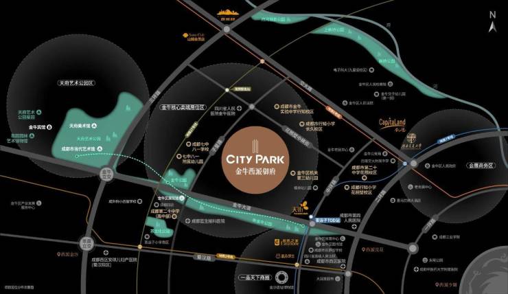 以新金牛公园为核心的茶店子-花照壁一线,官方称“茶花新城”规划面积约为0.98平方公里。以金牛大道茶店子路为中轴线,与三环外的金牛高新区、天公园片区互为犄角,共同构成了金牛极为重要的黄金三角区域。