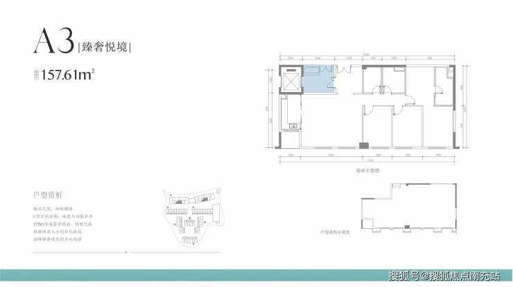 大平层A3户型,建筑面积157㎡,价格区间89.6万-133.75万。