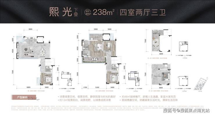 下叠建面238㎡实得330㎡
