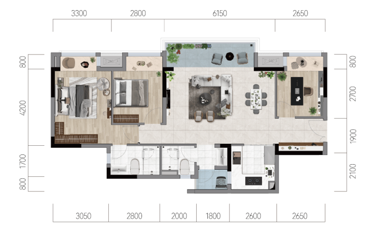 约14.9米奢阔面宽/独立书房动静分区/阔景阳台空间/约6.2米美学横厅/生活阳台设计